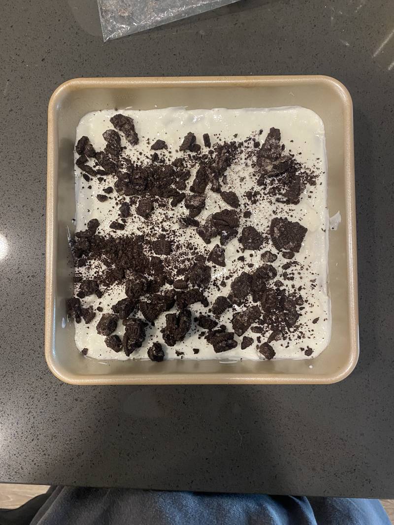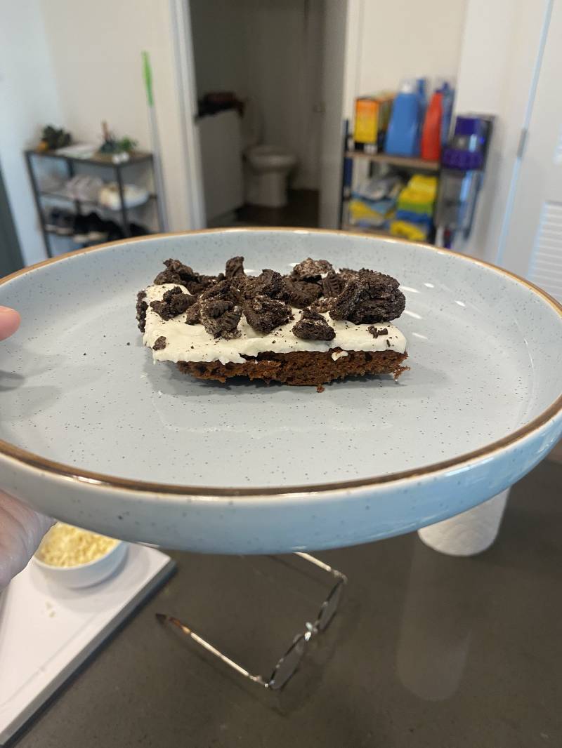 One reason my brownie didn’t look as dark as the one in the recipe was because I didn’t have dark cocoa powder. I only had regular cocoa powder, so the color was lighter and didn’t really resemble an Oreo. The flavor leaned more toward plain chocolate rather than that deep, dark Oreo taste.