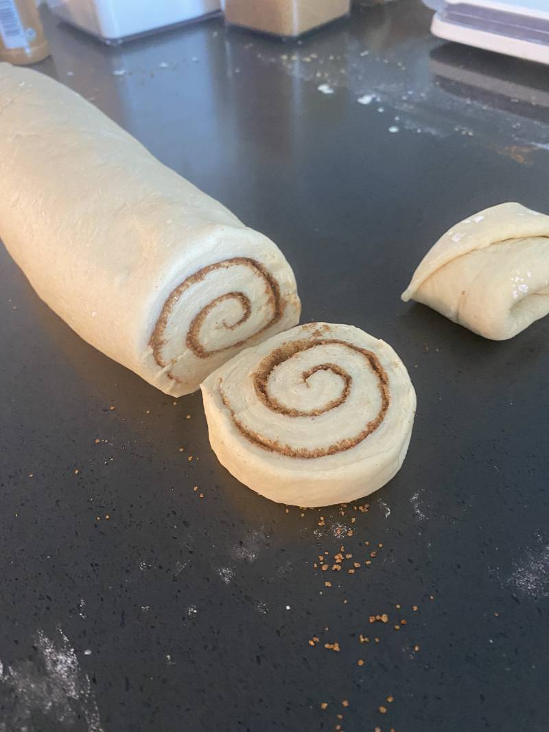 The recipe made about 16-18 rolls depending how thick you cut them. I ended up tossing the end pieces because they were uneven. I also think I cut the rolls a bit too thin, but they still puffed up beautifully and way more than I expected! After baking, they kind of looked like little nipples, but the swirl pattern still held perfectly.