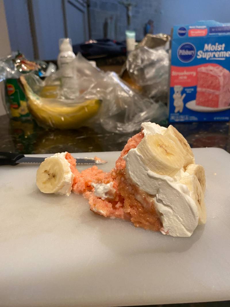 My first dessert in Texas! This week, I was craving tres leches, so I decided to make a strawberry banana version. I’ve made a strawberry one before, but adding banana just sounded too good to pass up.
